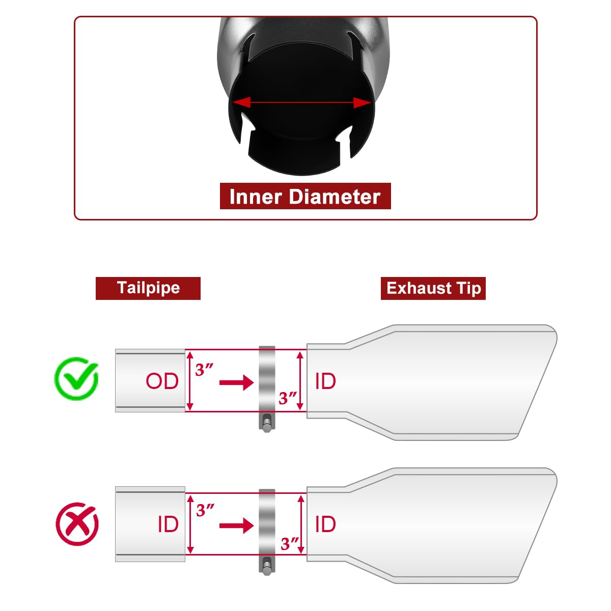 - 【Wide Application】Universal fits all 3" outside diameter exhaust tailpipes (not for 3" inner diameter), Please verify your tailpipe measurements before purchase